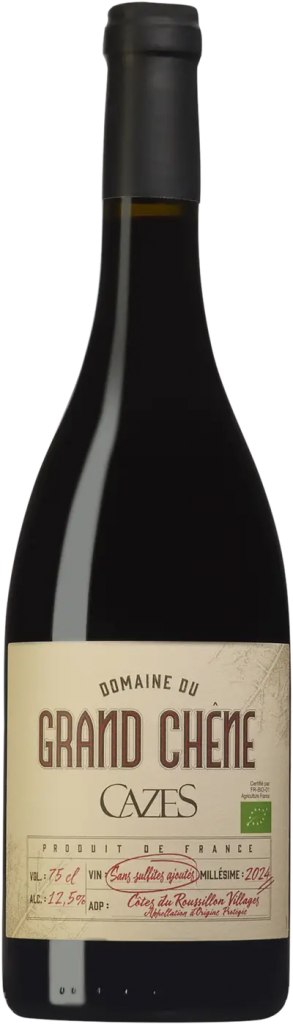 Maison Cazes som grundades 1895 och är idag en av de ledande producenterna i Roussillon med bas i Rivesaltes. Egendomen omfattar cirka 220 hektar vingårdar som sedan början av 2000-talet är helt biodynamiskt certifierade. Produktionen ligger på omkring 1,5 miljoner flaskor per år, med fokus både på klassiska söta Vins Doux Naturels som Rivesaltes och Muscat de Rivesaltes, och på ett brett sortiment av torra viner från olika appellationer i området. Ett sådant vin är 2024 Grand Chêne från Maison Cazes, som lanseras nu och som kommer från appellationen Côtes du Roussillon-Villages. För bara 125 kronor är detta – Ett riktigt fynd!